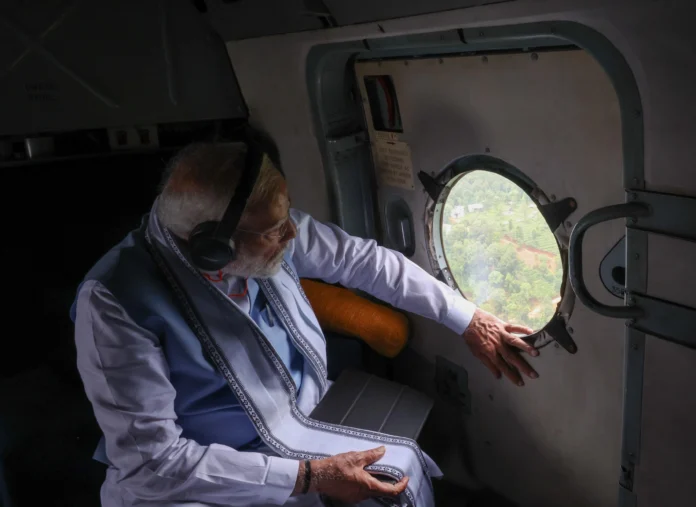 नई दिल्ली. प्रधानमंत्री नरेन्द्र मोदी ने शनिवार को वायनाड में भूस्खलन से प्रभावित इलाकों का हवाई सर्वे किया। पीएम मोदी का भूस्खलन प्रभावित गांवों का जमीनी दौरा करने का कार्यक्रम भी है। यहां वह वर्तमान में चल रहे इवैकुएशन ऑपरेशन के संबंध में रेस्क्यू टीमों से जानकारी लेंगे।