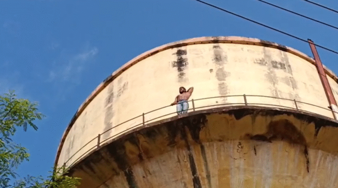 वन मंत्री संजय शर्मा के निवास के सामने स्थित शिशु अस्पताल के पास एक युवक अचानक पानी की टंकी पर चढ़ गया