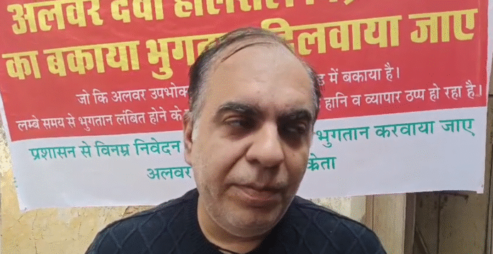 होलसेल दवा विक्रेताओं का अलवर सहकारी भंडार पर विरोध प्रदर्शन, 2014 से पेंडिंग भुगतान की उठाई मांग