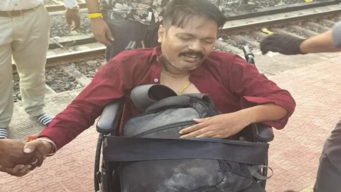 ट्रेन व प्लेटफार्म के बीच फंसा युवक