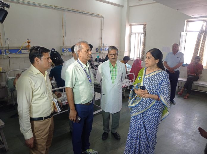 जयपुर. चिकित्सा एवं स्वास्थ्य विभाग की अतिरिक्त मुख्य सचिव शुभ्रा सिंह लू.तापघात को लेकर चिकित्सा प्रबंधन का जायजा लेने अचानक सवाई मानसिंह अस्पताल पहुंची। हीटवेव को लेकर पर्याप्त इंतजाम सुनिश्चित नहीं होने पर नाराजगी व्यक्त करते हुए उन्होंने अस्पताल प्रशासन को तत्काल कंटीजेंसी प्लान बनाने तथा 7 दिन में सभी व्यवस्थाएं सुचारू करने के निर्देश दिए।