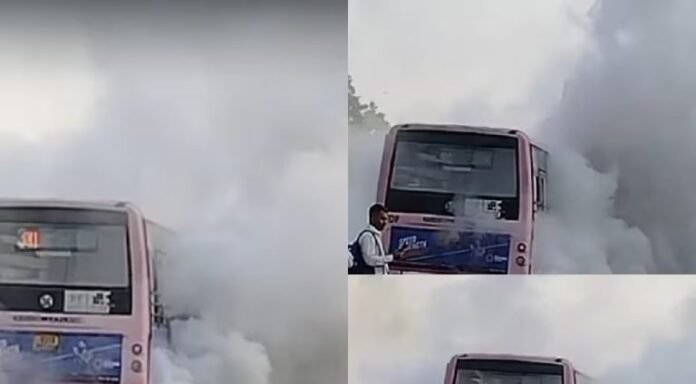 जयपुर: जयपुर (Jaipur) में टोंक फाटक पुलिया (Tonk Gate Bridge) के पास एक पिंक सिटी लो फ्लोर बस में अचानक आग लग गई, जिससे कुछ देर के लिए अफरा-तफरी का माहौल बन गया. घटना उस समय हुई जब बस में कई सवारियां मौजूद थीं और अचानक बस के इंजन से धुआं निकलने लगा. स्थिति को देखते ही चालक ने तुरंत समझदारी दिखाई और बस को सड़क के किनारे रोक दिया. चालक की सतर्कता के कारण सभी यात्रियों को सुरक्षित बाहर निकाला गया, जिससे बड़ा हादसा टल गया.