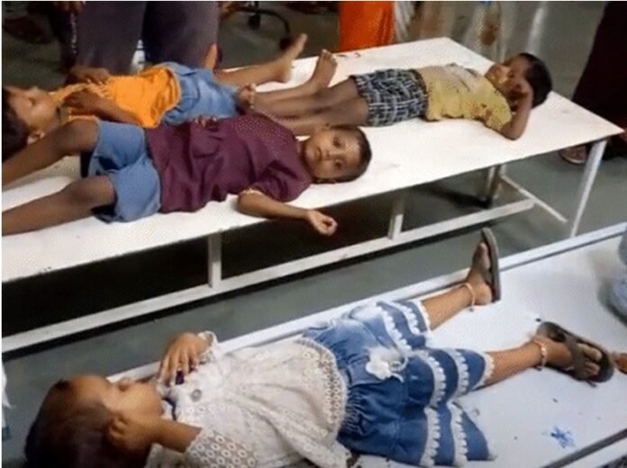 पूरा मामला अलीगढ़ जिले के अतरौली क्षेत्र के गांव नरौना आकापुर की है। जहां एक आंगनबाड़ी केंद्र में शुक्रवार को रोज की तरह बच्चे आए हुए थे। दोपहर का भोजन मिलने से पहले सभी बच्चे आंगनबाड़ी केंद्र में पढ़ाई कर रहे थे। अचानक कमरे से अजीब सी दुर्गन्ध आने लगी। इस पर आंगनबाड़ी केंद्र पर मौजूद चंद्रवती, महेंद्र कौर और योगेश पहुंचे। देखा बच्चे उल्टी कर रहे थे। कुछ बच्चों ने बताया कि उनके सिर में दर्द हो रहा है।