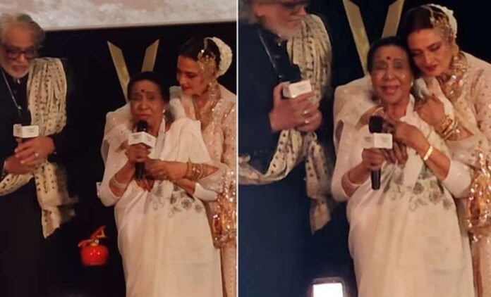इस स्पेशल इवेंट का सबसे खूबसूरत पल तब सामने आया जब भारतीय संगीत की महान गायिका आशा भोसले भी स्क्रीनिंग में पहुंचीं। मंच पर आशा भोसले ने फिल्म उमराव जान का अमर गीत दिल चीज़ क्या है अपनी जादुई आवाज़ में गाया। उनकी आवाज सुनकर पूरा माहौल मंत्रमुग्ध हो गया। जैसे ही गाना खत्म हुआ, रेखा भावुक होकर मंच पर आशा भोसले से लिपट गईं और उन्हें बार-बार गाल पर चूमती रहीं। दोनों के बीच यह स्नेह और सम्मान से भरा दृश्य वहां मौजूद सभी लोगों के दिल को छू गया। इसका वीडियो सोशल मीडिया पर वायरल है और फैंस भी इस भावुक लम्हे पर खूब प्यार लुटा रहे हैं।