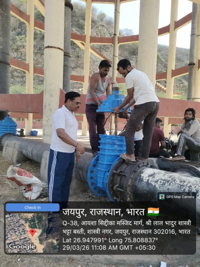 जयपुर। जलदाय मंत्री कन्हैया लाल के कुशल नेतृत्व में जलदाय विभाग की टीम ने बीसलपुर-जयपुर पेयजल परियोजना के अंतर्गत प्रस्तावित रखरखाव कार्य को निर्धारित शटडाउन अवधि से पहले ही सफलतापूर्वक पूर्ण कर एक उल्लेखनीय उपलब्धि हासिल की है।अतिरिक्त मुख्य अभियंता क्षेत्र द्वितीय जयपुर श्री अजय सिंह राठौड़ ने बताया कि विभाग द्वारा 28 मार्च 2026 को रात्रि 8:00 बजे से 29 मार्च 2026 को रात्रि 8:00 बजे तक आवश्यक रखरखाव कार्यों हेतु शटडाउन प्रस्तावित किया गया था। पूर्व निर्धारित कार्य योजना के अनुसार सभी कार्यों को समयबद्ध तरीके से निष्पादित किया गया, जिसके परिणामस्वरूप कार्य निर्धारित समय से पहले ही पूर्ण कर लिया गया।
