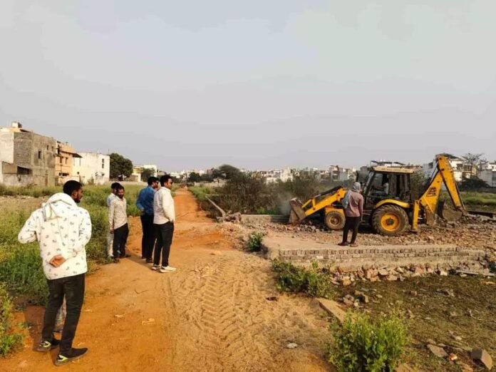 जोन 9 के जोन कमिश्नर अंशुल शर्मा सीनियर के मार्गदर्शन में यह अभियान चलाया गया। इस दौरान कार्यपालन अभियंता शरद ध्रुव, सहायक अभियंता सैयद जोहेब और उपअभियंता आशुतोष पाण्डेय मौके पर मौजूद रहे। नगर निवेश विभाग की टीम ने स्थल निरीक्षण के बाद पाया कि बिना अनुमति सड़क निर्माण और बाउंड्रीवाल खड़ी की जा रही थी।