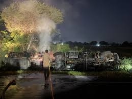 दौसा। जिले में शुक्रवार रात जयपुर-आगरा राष्ट्रीय राजमार्ग पर एक केमिकल से भरा टैंकर पलट गया। हादसे के बाद टैंकर में आग लग गई, जिससे हाइवे और आसपास के इलाके में हड़कंप मच गया। घटना की जानकारी मिलते ही पुलिस और फायर ब्रिगेड की टीम मौके पर पहुंची।