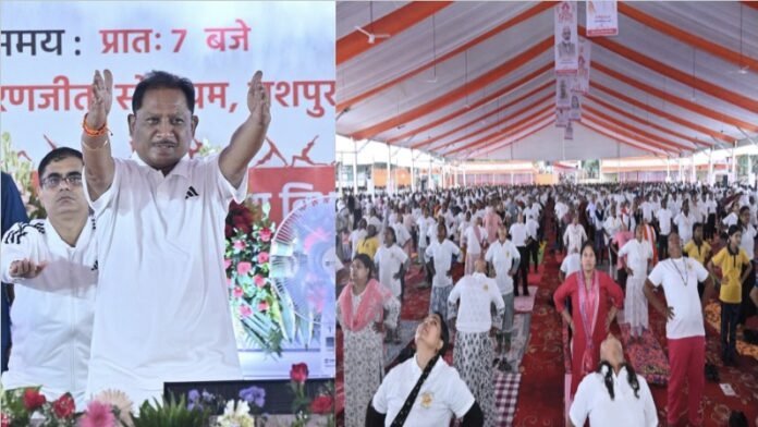 छत्तीसगढ़ के मुख्यमंत्री विष्णु देव साय ने अंतरराष्ट्रीय योग दिवस के मौके पर जिला मुख्यालय जशपुर में हजारों लोगों के साथ योग किया. उन्होंने लोगों को अंतरराष्ट्रीय योग दिवस की बधाई एवं शुभकामनाएं दी. सीएम ने कहा कि योग हमारे देश के लिए कोई नई विधा नहीं है. सनातन काल से योग हमारे जीवन में चला आ रहा है. हमारे ऋषि मुनियों ने इसका ईजाद किया है. प्रधानमंत्री नरेंद्र मोदी ने विश्व पटल पर योग की महत्ता को स्थापित किया. संयुक्त राष्ट्र महासभा में वर्ष 2014 में आवाज उठाई और इसे विश्व स्तर पर स्वीकृति दिलाई.