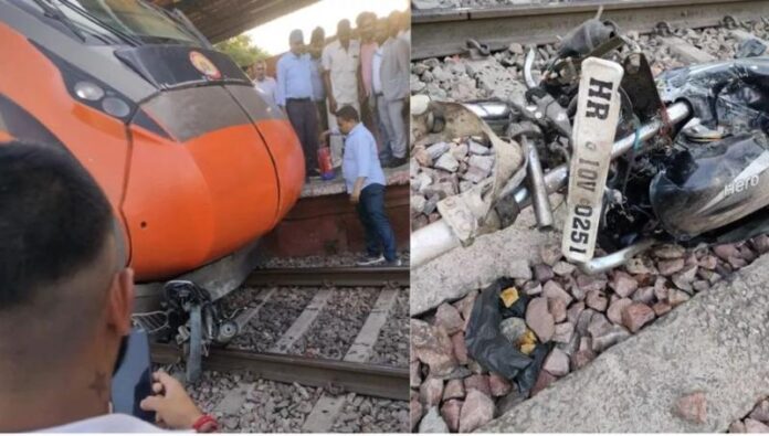 जानकारी के अनुसार करीब 6 बजे एक युवक बाइक पर बंद फाटक पार करने का प्रयास कर रहा था। जब वह लाइन पर पहुंचा तो इस दौरान दिल्ली की ओर से तेज रफ्तार से आ रही वंदे भारत ट्रेन को नजदीक देख उसने छलांग लगाई और किसी तरह अपनी जान बचा ली। बाइक इंजन के अगले हिस्से में फस गई। इस बीच वंदे भारत ट्रेन के चालक ने इमरजेंसी ब्रेक लगाए। इसके बावजूद ट्रेन बाइक को लगभग 500 मीटर तक घसीटते हुए ले गई, जिससे बाइक पूरी तरह क्षतिग्रस्त हो गई। हादसे के बाद ट्रेन स्टेशन पर रुक गई और वह करीब 30 मिनट तक स्टेशन पर खड़ी रही। इस दौरान यात्रियों में भी हड़कंप की स्थिति बनी रही।