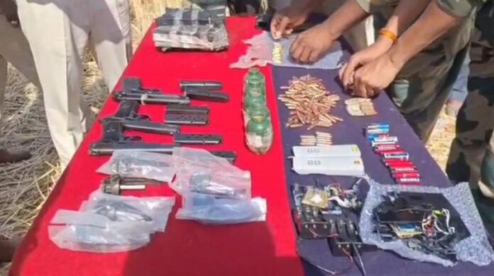 नवरात्रि का त्योहार 22 सितंबर सोमवार से शुरू होने जा रहा है। नौ दिनों तक चलने वाले इस पर्व को देशभर में धूमधाम से मनाया जाता है। नवरात्रि के त्योहार के रंग में भंग डालने के लिए आतंकवादी नाकाम साजिश रच रहे है। भारतीय जवान हर बार की तरह इस बार भी इस त्योहार से पहले आतंकियों की बड़ी साजिश को नाकाम कर दिया है। खुफिया जानकारी पर आधारित समन्वय और संचालन कुशलता का अद्भुत उदाहरण पेश करते हुए सीमा सुरक्षा बल (बीएसएफ) और पंजाब पुलिस ने एक संयुक्त अभियान चलाया और 16 पिस्तौलों सहित हथियारों और गोला-बारूद का एक बड़ा जखीरा बरामद किया और दो तस्करों को गिरफ्तार किया। सीमा सुरक्षा बल ने शुक्रवार को यह जानकारी दी।