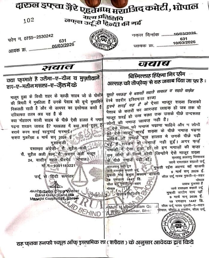 Homeराज्यमध्यप्रदेशफतवे को लेकर विवाद, ऑल इंडिया मुस्लिम त्योहार कमेटी का हमला: मुफ्ती...