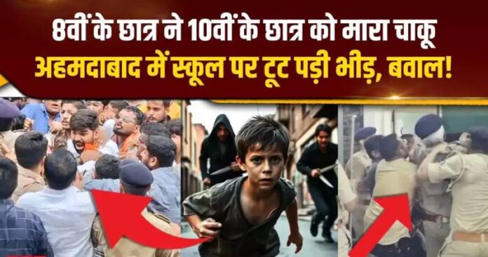 अहमदाबाद के मणिनगर खोकरा इलाके में सेवेंथ डे स्कूल है। 19 अगस्त यानी मंगलवार को स्कूल में एक दिल दहला देने वाली वारदात सामने आई थी। कक्षा 10 में पढ़ने वाले एक छात्र को स्कूल के छात्र ने चाकू घोंप दिया था। इस घटना में 10वीं के छात्र की जान चली गई थी। जानकारी के अनुसार दोनों के बीच धक्का-मुक्की का मामूली विवाद हुआ था। छात्र की मौत के बाद बुधवार को परिजनों और दूसरे अभिभावकों ने स्कूल के बाहर प्रदर्शन किया। इस दौरान हंगाम और तोड़फोड़ हुई। पुलिस ने स्थिति को संभाला। घटना की जानकारी पर मणिनगर के विधायक अमूल भट्ट मौके पर पहुंचे तो वहीं दूसरी शिक्षा मंत्री प्रफुल पानशेरिया ने इस घटना को चिंताजनक बताया।