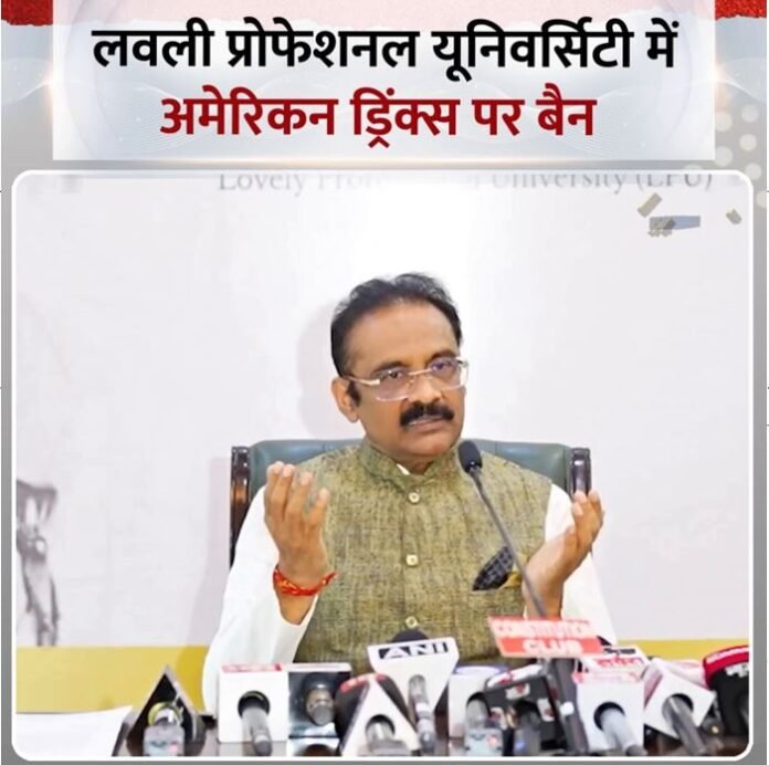 चंडीगढ़: अमेरिकी राष्ट्रपति डोनाल्ड ट्रंप द्वारा भारत पर 50 फीसदी टैरिफ लगाने के विरोध में पंजाब की लवली प्राेफेशनल यूनिवर्सिटी ने बड़ा फैसला लिया है। यूनिवर्सिटी ने कैंपस में अमेरिकी ड्रिंक्स पर पाबंदी लगा दी है। इस फैसला का ऐलान खुद यूनिवर्सिटी के संस्थापक कुलपति और राज्यसभा सांसद डॉ. अशोक कुमार मित्तल ने की है। उन्होंने कहा है कि यूनिवर्सिटी और तमाम छात्रों ने 15 अगस्त को यह निर्णय लिया था कि अगर अमेरिका राष्ट्रपति डोनाल्ड ट्रंप 27 अगस्त से टैरिफ लगाते हैं तो लवली प्रोफेशनल यूनिवर्सिटी में अमेरिकी ड्रिंक्स को बैन किया जाएगा। मित्तल ने दिल्ली में एक प्रेस कांफ्रेंस में इसका ऐलान किया। उन्होंने इससे जुड़ा वीडियो अपने फेसबुक पेज पर शेयर किया है। एलपीयू में 40 हजार से अधिक स्टूडेंट हैं। ये देश की सबसे बड़ी प्राइवेट यूनिवर्सिटी है।