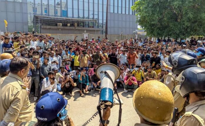 नोएडा सेक्टर-80 में कर्मचारियों का बवाल, पत्थरबाजी के बाद पुलिस का लाठीचार्ज