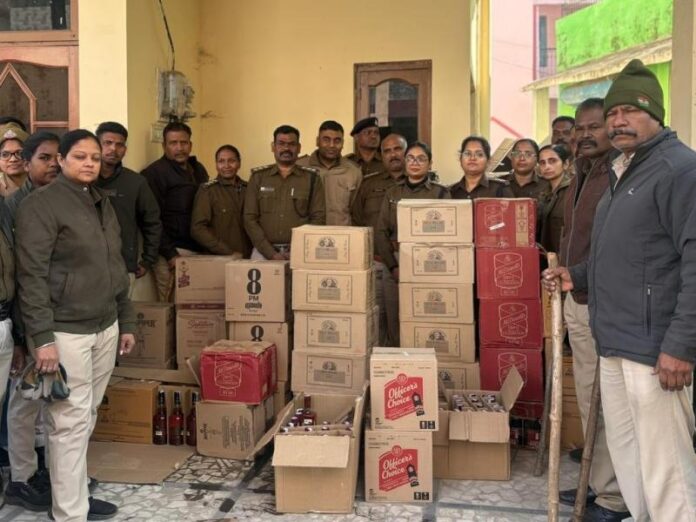 जानकारी के अनुसार 15 मार्च की देर रात आबकारी आयुक्त के निर्देशानुसार अवैध मदिरा के निर्माण, विक्रय, संग्रहण और परिवहन पर सख्ती से अंकुश लगाने के लिए अभियान चलाया जा रहा है. इसी के तहत कलेक्टर राघवेन्द्र सिंह के निर्देशन सहायक आबकारी आयुक्त संजीव कुमार दुबे के मार्गदर्शन और कंट्रोल रूम प्रभारी परमानंद कोरचे के नेतृत्व में टीम को विश्वसनीय मुखबिर से सूचना मिली कि थाना बेलखेड़ा क्षेत्र के ग्राम गुबराकलां में गीताबाई दुबे के घर में बड़ी मात्रा में अवैध शराब का भंडारण किया गया है. बड़ी मात्रा में भंडारण की सूचना मिलते ही आबकारी टीम ने मौके पर दबिश दी. तलाशी के दौरान रियायशी घर से 345 पेटी देशी मदिरा मसाला और 266 पेटी देशी मदिरा प्लेन कुल 5499 बल्क लीटर देशी शराब बरामद की गई. विभाग के अनुसार जब्त शराब की अनुमानित कीमत करीब 28 लाख रुपये है।