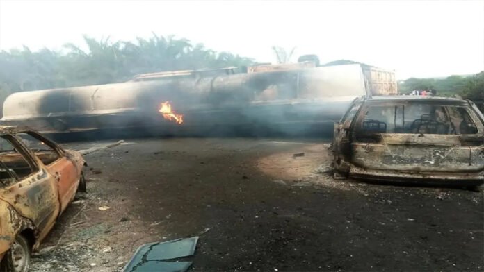 नाइजारिया। नाइजारिया (Nigeria) में दर्दनाक हादसा (Tragic Accident) हुआ है। यहां गैसोलीन (Gasoline) से भरे एक टैंकर (Tanker) में विस्फोट (Explosion) होने के कारण कम से कम 31 लोगों की मौत हो गई है। पुलिस प्रवक्ता वसीउ आबिदीन ने एक बयान में कहा कि नाइजर राज्य के बिदा क्षेत्र में ट्रक के पलट जाने के बाद विस्फोट हुआ। स्थानीय निवासी फैलते ईंधन को इकट्ठा करने के लिए घटनास्थल की ओर दौड़े। उन्होने कहा कि विस्फोट में 17 लोग घायल भी हुए हैं, जिन्हें नजदीकी अस्पतालों में ले जाया गया है।