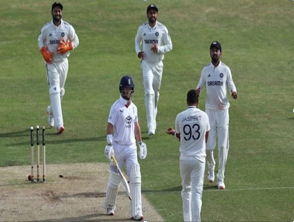 दूसरे दिन इंग्लैंड ने 251/4 से आगे खेलना शुरू किया और 102 रन जोड़ते हुए लंच तक 353/7 पहुंचा, बुमराह ने आधे घंटे के भीतर बेन स्टोक्स, जो रूट और क्रिस वोक्स को आउट किया, स्टोक्स (44) और वोक्स (0) को बोल्ड ,रूट ने 199 गेंदों में 104 रन बनाए और 10 चौके लगाए ,क्रिस वोक्स का गोल्डन डक बुमराह के लिए लगातार दूसरी गेंद पर आया, जैमी स्मिथ ने तेज पारी में 51 रन बनाए लेकिन लंच के बाद सिराज ने उन्हें आउट कर दिया, ब्रायडन कार्स ने भी 56 रन की पारी खेली, लेकिन अंततः सिराज ने उन्हें बोल्ड कर इंग्लैंड की पारी समाप्त की।