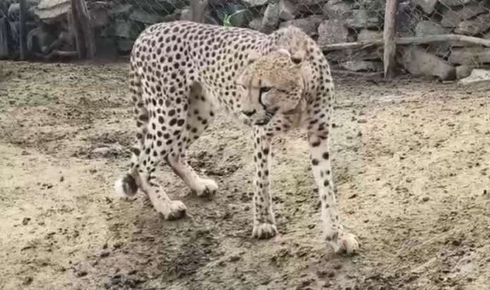सवाई माधोपुर : मध्यप्रदेश के कूनो नेशनल पार्क से एक मादा चीता राजस्थान पहुंच गई। ‘ज्वाला’ नाम की यह चीता करीब 130 किलोमीटर दूर सवाई माधोपुर जिले के बालेर गांव में आ गई और एक बाड़े में घुसकर बकरी का शिकार कर लिया। मंगलवार सुबह करीब 6 बजे ग्रामीणों ने जब बाड़े में चीता देखा तो तुरंत टाइगर रिजर्व टीम को सूचना दी। चीता के एग्रेसिव व्यवहार के कारण वन विभाग की टीम उसे रेस्क्यू नहीं कर सकी। इसके बाद कूनो नेशनल पार्क के अधिकारियों को जानकारी दी गई। सुबह करीब 10 बजे कूनो की टीम बालेर गांव पहुंची और 15 मिनट के भीतर ‘ज्वाला’ को ट्रैंकुलाइज कर वापस कूनो ले गई। बालेर गांव मध्यप्रदेश के श्योपुर जिले की सीमा से सटा हुआ है।