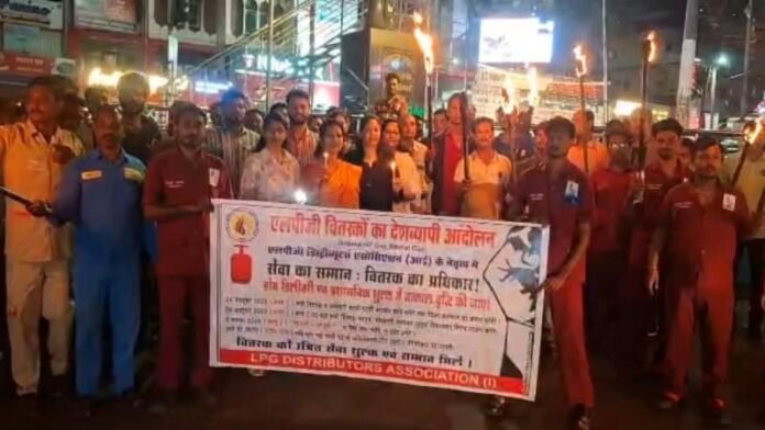 भारत सरकार की सार्वजनिक तेल कंपनी आईओसीएल, एचपीसीएल और बीपीसीएल के एलजी डीलरों ने 24 अक्टूबर 2025 से आंदोलन प्रारंभ किया था. एलपीजी डिस्ट्रीब्यूशन एसोसिएशन ने बताया कि, ''24 अक्टूबर 2025 को आंदोलन के प्रथम चरण में सभी डीलर व उनके कर्मचारी ने काली पट्टी बांधकर काम किया था और जिला कलेक्टर के माध्यम से सचिव पेट्रोलियम मंत्रालय को ज्ञापन सौंपा. 29 अक्टूबर को सभी वितरक व उनके कर्मचारियों ने अपने जिला मुख्यालय पर मशाल एवं मोमबत्ती जलाकर विरोध प्रदर्शन किया. 6 नवंबर 2025, गुरुवार को आंदोलन का अंतिम चरण होगा. अंतिम चरण में यदि एलपीजी वितरक सेवा शुल्क एवं होम डिलीवरी प्रभाव में वृद्धि नहीं की गई, तो एलपीजी वितरण का अनिश्चितकालीन हड़ताल पर जाने की घोषणा की जाएगी.