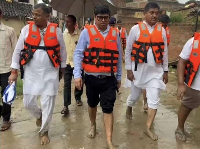 हमीरपुरः उत्तर प्रदेश के हमीरपुर में यमुना और बेतवा नदी की बाढ़ से तीस से ज्यादा गांवों में बड़ी तबाही मची है। योगी सरकार के जलशक्ति राज्यमंत्री एवं प्रभारी मंत्री ने बाढ़ग्रस्त इलाकों का तीन बार दौरा कर बाढ़ पीड़ितों को राहत सामग्री मुहैया कराई है। लेकिन मंत्री, डीएम और महिला एसपी को कीचड़ और दलदल भरे रास्ते में नंगे पांव चलकर बाढ़ पीड़ितों तक जाने की दृश्य देख आम लोग दंग रह गए। कीचड़ भरे रास्ते में मंत्री से लेकर प्रशासन के आला अफसरों के नंगे पांव चलने का वीडियो यहां सोशल मीडिया में तेजी से वायरल हो रहा है।