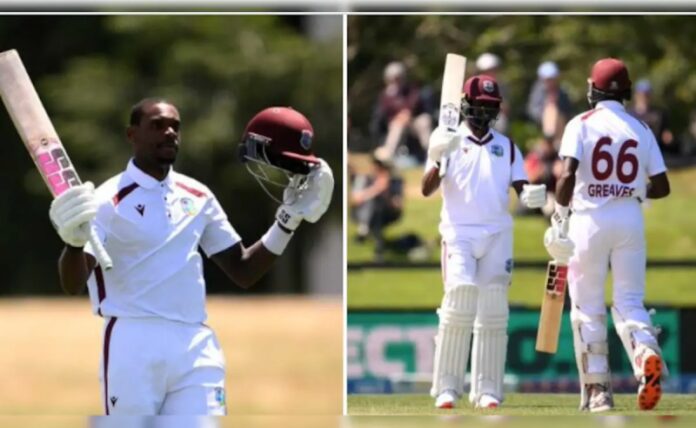 इस मैच की आखिरी पारी में न्यूजीलैंड ने वेस्टइंडीज को जीत के लिए 531 रनों का टारगेट दिया. लेकिन वेस्टइंडीज ने 74 रन पर ही 4 विकेट गंवा दिए, जिसके बाद न्यूजीलैंड की जीत साफ नजर आ रही है. लेकिन जस्टिन ग्रीव्स और शे होप के इरादे कुछ और ही थे. दोनों खिलाड़ियों के बीच 5वें विकेट के लिए 196 रनों की साझेदारी हुई और मैच का रुख बदल गया. शे होप ने 234 गेंदों पर 140 रनों की पारी खेली. वहीं, उनके आउट होने के बाद जस्टिन ग्रीव्स ने कमान संभाली और अंत तक आउट नहीं हुए |