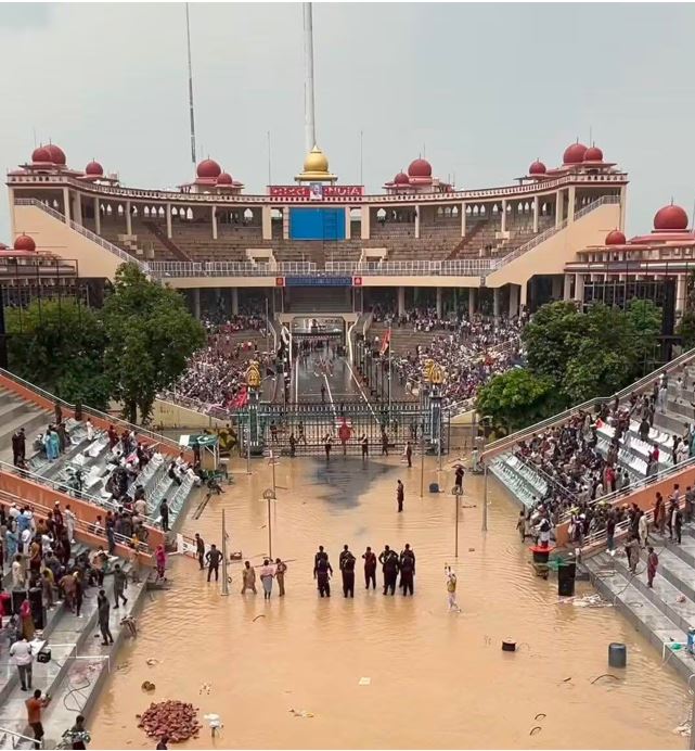 पाकिस्तान के कई हिस्से इस समय बाढ़ की चपेट में हैं। वाघा बॉर्डर पर वायरल हुआ यह दृश्य केवल उस बड़ी त्रासदी की एक झलक है। लगातार हो रही बरसात ने पाकिस्तान के बुनियादी ढांचे की कमजोरियों को उजागर कर दिया है। वहीं भारतीय पक्ष की साफ और व्यवस्थित परेड ग्राउंड ने एक बार फिर दोनों देशों के बुनियादी ढांचे और प्रबंधन क्षमता का अंतर दुनिया के सामने रख दिया है।