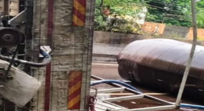 चालक गुलाब साहू और हेल्पर इमरान ने बताया कि मिनी ट्रक के डाला में साबुन बनाने में इस्तेमाल आने वाली केमिकल से भरा टेंकर था। अचानक टायर फटने से मिनी ट्रक अनियंत्रित होकर पलट गई। ट्रक के पलटते ही पीछे डाले पर रखा टैंकर लुढ़ककर सड़क पर जा गिरा। इसके चलते टेंकर का केमिकल सड़क से लेकर समीप के खारुन ग्रीन कॉलोनी तक फैल गया। इससे कॉलोनी के लोगों में अनहोनी के अंदेशे से खौफ पसर गया। वहीं देखते – देखते कुम्हारी की ओर लंबा जाम लग गया।
