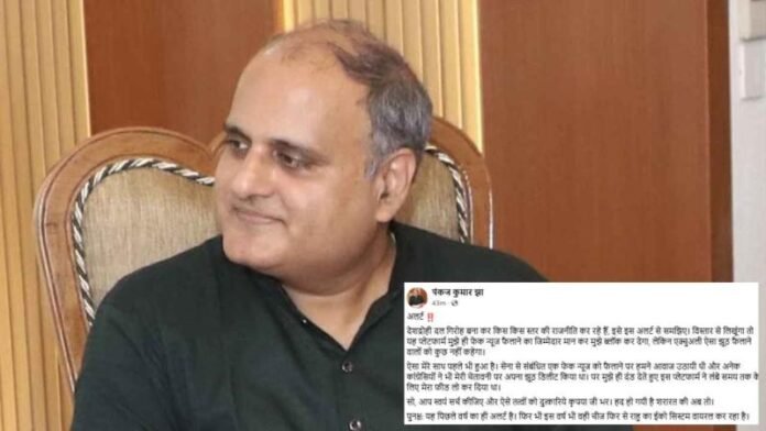 मुख्यमंत्री विष्णु देव साय के मीडिया सलाहकार पंकज कुमार झा ने सोशल मीडिया पर एक अलर्ट जारी किया है. उन्होंने साल 2025 की एक फेक खबर को शेयर करते हुए लिखा- ‘ अलर्ट! देशद्रोही दल गिरोह बना कर किस किस स्तर की राजनीति कर रहे हैं, इसे इस अलर्ट से समझिए. विस्तार से लिखूंगा तो यह प्लेटफार्म मुझे ही फेक न्यूज फैलाने का जिम्मेदार मान कर मुझे ब्लॉक कर देगा, लेकिन एक्चुअली ऐसा झूठ फैलाने वालों को कुछ नहीं कहेगा. ऐसा मेरे साथ पहले भी हुआ है. सेना से संबंधित एक फेक न्यूज को फैलाने पर हमने आवाज उठायी थी और अनेक कांग्रेसियों ने भी मेरी चेतावनी पर अपना झूठ डिलीट किया था. पर मुझे ही दंड देते हुए इस प्लेटफार्म ने लंबे समय तक के लिए मेरा फीड लो कर दिया था.’