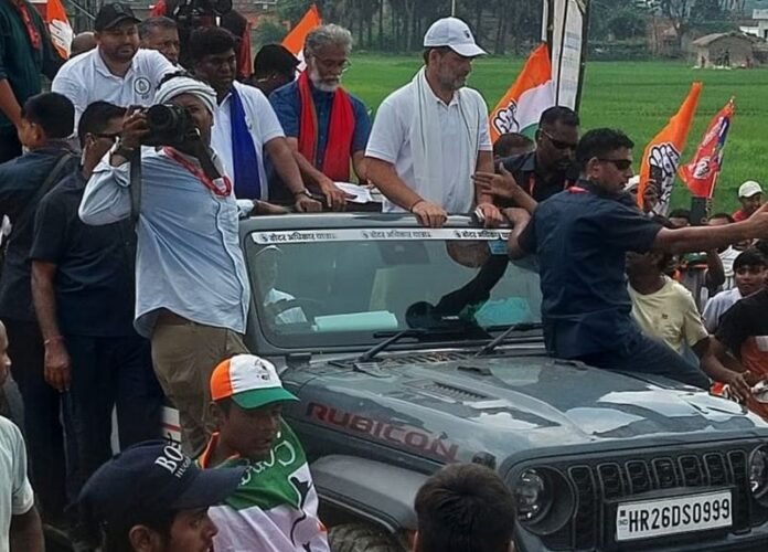 पटना। बिहार की राजनीति में विधानसभा चुनाव से पहले ही सियासी तापमान चढ़ चुका है। कांग्रेस सांसद और लोकसभा में विपक्ष के नेता राहुल गांधी और राजद नेता तेजस्वी यादव की अगुवाई में निकाली गई ‘वोटर अधिकार यात्रा’ का समापन सोमवार 01 सितंबर को पटना के गांधी मैदान में शक्ति प्रदर्शन के साथ हो रहा। इसमें शामिल होने के लिए राहुल गांधी पटना पहुंचे और खुली जीप में सवार हो रोड शो में निकले हैं।