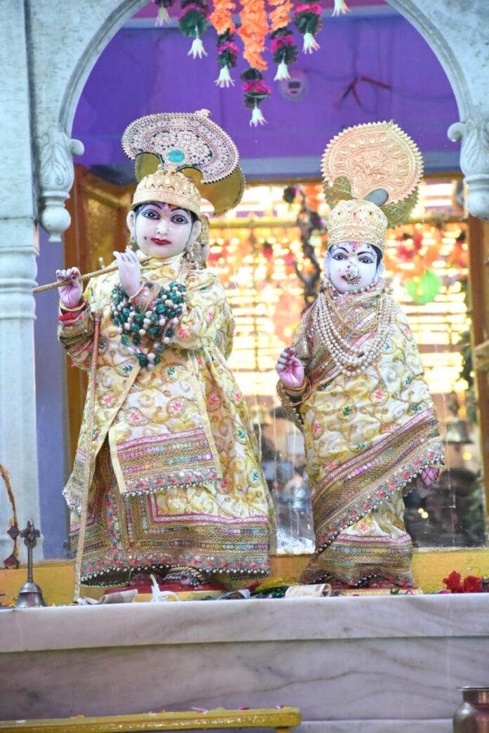 भगवान श्रीकृष्ण और राधा रानी के आभूषणों में बेहद बेशकीमती गहने शामिल हैं. सोने के मुकुट, पन्ना जड़ित सात लड़ियों का हार, हीरे और रत्न से जड़े राधा जी के कंगन और तो और कृष्ण की बांसुरी भी सोने की है, जिसमें हीरे जड़े हुए हैं. वहीं, चांदी के बर्तनों में जन्माष्टमी के दिन यहां पूजन किया जाता है.