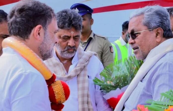 मैसूरु। कर्नाटक में सत्तारूढ़ कांग्रेस सरकार के भीतर नेतृत्व को लेकर जारी खींचतान के बीच एक महत्वपूर्ण राजनीतिक घटनाक्रम सामने आया है। पार्टी के वरिष्ठ नेता राहुल गांधी ने मैसूरु के मंडकल्ली हवाई अड्डे पर मुख्यमंत्री सिद्धरमैया और उपमुख्यमंत्री डी.के. शिवकुमार से संक्षिप्त मुलाकात की। हालांकि यह मुलाकात काफी छोटी थी, लेकिन राज्य की वर्तमान राजनीतिक परिस्थितियों को देखते हुए इसने सत्ता गलियारों में अटकलों का बाजार गर्म कर दिया है।