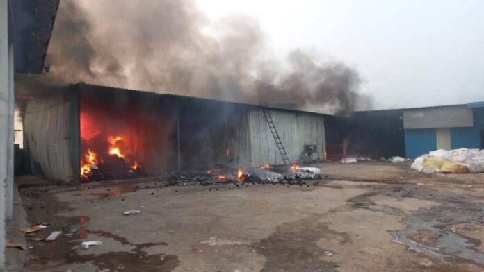 मुरैना: बानमौर औद्योगिक क्षेत्र स्थित खेड़ापति सर्जिकल कॉटन फैक्ट्री में बुधवार की शाम आग लग गई. धुएं का गुबार देख फैक्ट्री में काम कर रहे मजदूरों में हड़कंप मच गया. सभी जान बचाने के लिए इधर-उधर भागने लगे. उन्होंने किसी तरह भागकर अपनी जान बचाई. आग इतनी विकराल थी कि चंद मिनटों में ही पूरी फैक्ट्री को अपनी चपेट में ले लिया. अंदर रखा सारा माल और बड़ी-बड़ी मशीनें जल गई. इस घटना में करोड़ों का नुकसान बताया जा रहा है.