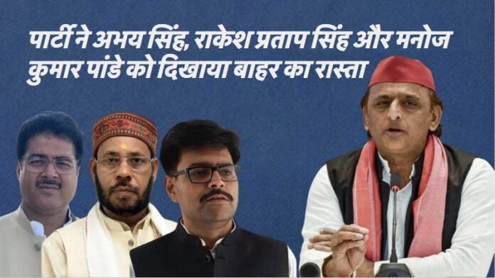 उत्तर प्रदेश में समाजवादी पार्टी ने अपने 3 विधायकों को पार्टी से निकाल दिया है. इस संबंध में पार्टी ने आधिकारिक बयान जारी किया है. सपा ने ये कार्रवाई उनकी जन विरोधी विचारधारा और पार्टी के मूल उद्देश्य से भटकने की वजह से की है. पार्टी ने अभय सिंह, राकेश प्रताप सिंह और मनोज कुमार पांडे को बाहर का रास्ता दिखाया है.