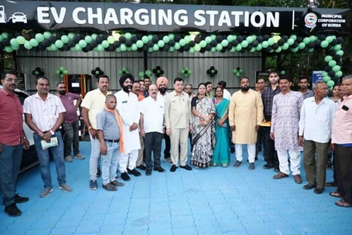 नगर पालिक निगम कोरबा द्वारा इलेक्ट्रानिक वाहनों की चार्जिंग हेतु महत्वपूर्ण सुविधा उपलब्ध कराते हुये घंटाघर निहारिका मार्ग पर स्थित स्मृति उद्यान के समीप 25 लाख रूपये की लागत से ई.व्ही. चार्जिंग स्टेशन की स्थापना की गई है। आज कैबिनेट मंत्री लखनलाल देवांगन के मुख्य आतिथ्य एवं महापौर श्रीमती संजूदेवी राजपूत की अध्यक्षता में आयोजित कार्यक्रम के दौरान उक्त चार्जिंग स्टेशन का शुभारंभ उनके करकमलों के द्वारा किया गया।