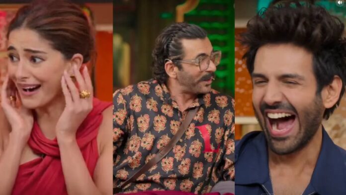 इस दौरान सुनील ने शादी के बारे में कार्तिक से पूछते हुए मजाक बनाया. उन्होंने कार्तिक से पूछा कि अभी आपकी शादी हुई है, जब इस पर कपिल ने जवाब देते हुए ना कह दिया, तो सुनील ने मजाक करते हुए कहा एक भी बार नहीं हुई. दरअसल, आमिर खान ने दो शादियां की थी, जिससे लोग इस मजाक को रिलेट कर पा रहे हैं. इसके अलावा सुनील ने कार्तिक-अनन्या की फिल्म के टाइटल को लेकर भी मजाक किया. सोशल मीडिया पर लोग सुनील को AI कह रहे हैं, वहीं कई लोगों का कहना है कि सुनील आमिर से ज्यादा आमिर लग रहे हैं |