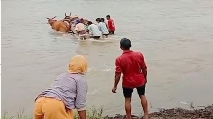 सुनीता की सास रामवती ने बताया कि नदी का बहाव बहुत तेज था, लेकिन प्रसव पीड़ा बढ़ने के कारण उसे जल्द से जल्द अस्पताल ले जाना जरूरी था। ग्रामीणों ने सहयोग किया और जोखिम उठाते हुए बैलगाड़ी के जरिए नदी पार कराई। मैं भी साथ आ रही थी, बहने लगी तो साथ वालों ने पकड़ा। रामवती ने बताया कि बैलगाड़ी से नदी पार करने के बाद एंबुलेंस से अस्पताल लेकर आए ।
