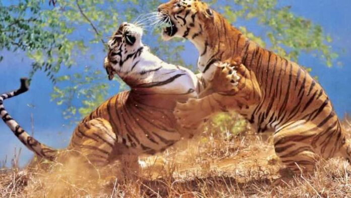 टेरिटरी को लेकर बाघ और बाघिन में हुआ खूनी संघर्ष