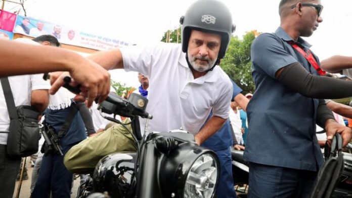 Voter Adhikar Yatra: बिहार में कांग्रेस सांसद राहुल गांधी वोटर अधिकार यात्रा निकाल रहे है। राहुल गांधी ने पूर्णिया में बुलेट चलाई। इस दौरान सुरक्षा में चूक का मामला सामने आया। दरअसल, जब कांग्रेस सांसद राहुल गांधी बुलेट चला रहे थे, तभी एक शख्स जबरन उनके पास आ गया और गाल पर किस कर लिया। इस घटना के बाद मौजूद सुरक्षाकर्मियों के होश उड़ गए। हालांकि SPG के जवान ने उस शख्स को राहुल गांधी से दूर किया और चांटा भी जड़ दिया।