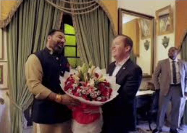 उदयपुर। लेक सिटी उदयपुर की ऐतिहासिक और सांस्कृतिक भव्यता को निहारने पहुंचे अमेरिकी राजदूत सर्जियो गोर ने प्रसिद्ध सिटी पैलेस का भ्रमण किया। वहां पहुंचने पर लक्ष्यराज सिंह मेवाड़ ने पारंपरिक अंदाज में उनका शाही स्वागत किया।