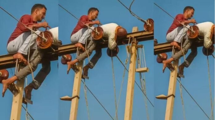 खंभे से चिपकते ही छोड़कर भागे कर्मचारी